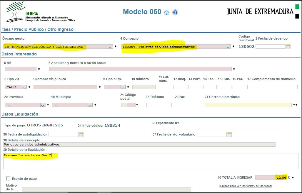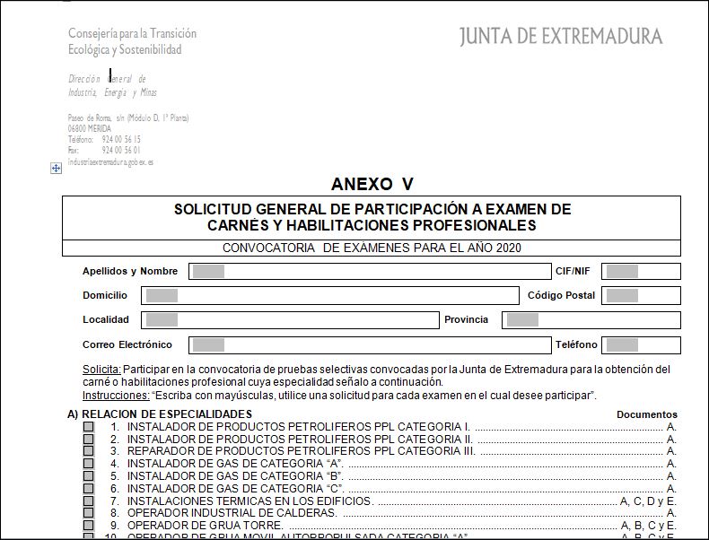 Cómo hacer la Solicitud de Examen de Instalador de Gas en Extremadura 2020